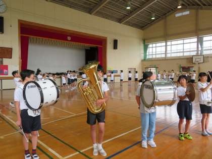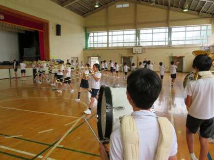 上学年が、金管練習を毎日頑張っています。10月7日(月)からは、実際に楽器を演奏しながらフォーメーションを確認しています。この調子で頑張ります。