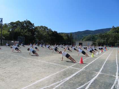 10月9日(水)から、外に出て練習を始めました。2曲目のダンスも仕上がってきました。今年初めての運動場での練習だったため、素足で砂が痛いと言ってる子もいましたが、みんな全力で頑張りました。