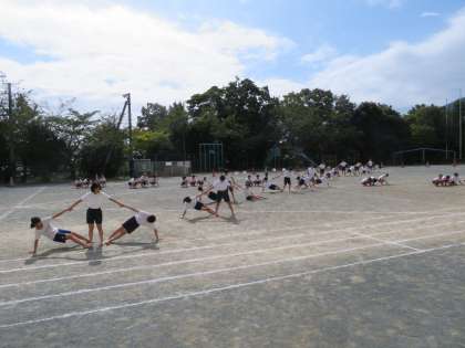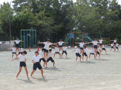 上学年の運動会に向けた表現種目の練習が着々と進んでいます。10日(木)には、3曲目がほぼ完成しました。これからも、頑張ります。
