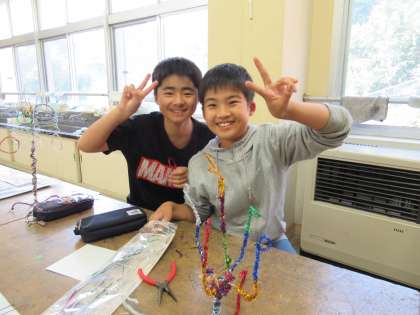 5年生が教務の浅川先生にご指導いただいている12月20日(金)の図工の授業では、子どもたちが針金を工夫して好きなものを造形する「立ち上がれマイライン」の作品を完成させていました。どの子も、その子なりのこだわりを持ち、工夫をして、素敵な作品を作っていました。