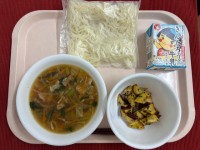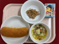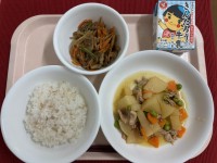 牛乳 むぎごはん まぐろのケチャップあえ じゃがいもとごぼうのきんぴら