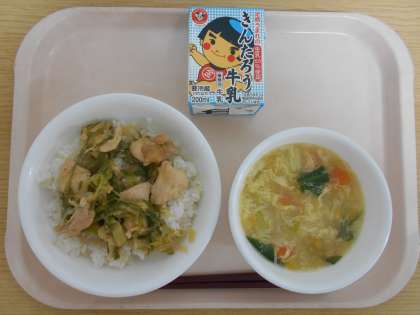 今日のやきとり丼には長葱をいれました。苦手な子でも、「やきとり丼のねぎは大丈夫だよ。」と言ってくれました。ねぎは給食室の回転釜で10分ほど炒めました。