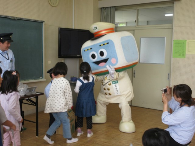 駅の使い方や車内でのマナー等、「マナー鶴」が出てきて多くのことを教わりました。「電ちゃん」も登場し、〇×クイズもしました。教わった通りできるかどうかがこれからの課題です。マナーを守って電車に乗って欲しいと願っています。
