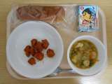 牛乳 くろパン まぐろのケチャップあえ 肉団子とキャベツのスープ 今日のまぐ...