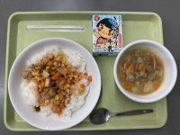 今日の献立 牛乳、まぜまぜチキンライス、野菜コンソメスープ今日は、野菜コンソメスープについて紹介します。野菜には、体の調子を整えるビタミンやミネラル、お腹の掃除をしてくれる食物繊維がたくさんあります。...
