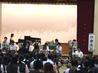学習発表会において、吹奏楽部は日々の練習の成果を披露しました。「音を合わせること」「気持ちを伝えること」を大切にしながら、練習に励んできたメンバーたち。今日の演奏では、皆さんになじみのある楽曲を演奏し、会場に楽しい雰囲気をもたらしました。