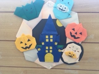 10月の校内掲示は、折り紙ボランティアの皆さんが心を込めて折ってくださったハロウィンの作品で彩られています。
