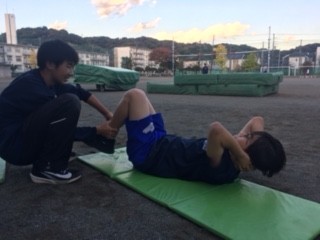 筋力トレーニングでは、すべての基本となる「腹筋強化」に重点を置き、非常にハードなメニューに挑戦しました。