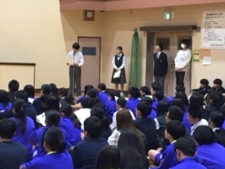 今回のピアノトリオによる学校アウトリーチ演奏会では、生徒会本部役員が司会進行を務めました。