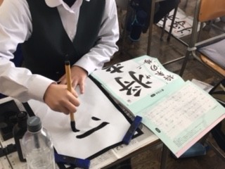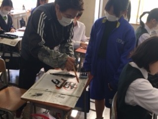 このたび、1年生の書道の授業に書写ボランティアの皆様をお迎えしました。