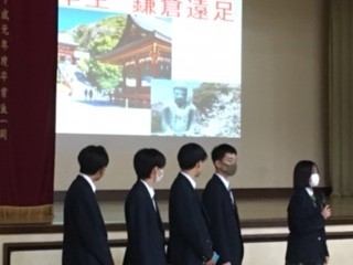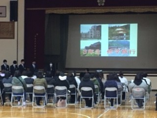 説明会では、学校生活や年間行事、学習の取り組みについての話しがありました。特に、生徒会本部役員によるプレゼンテーションでは、写真を交えながら「1年間の学校の様子」を紹介し、保護者の皆様に本校の魅力をお伝えしました。