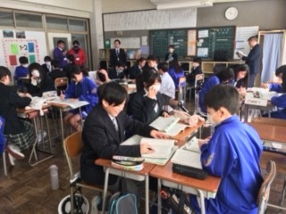 本日2時間目、1年2組において国語科の公開授業が行われました。多くの先生方が、授業の様子を参観していただきました。