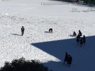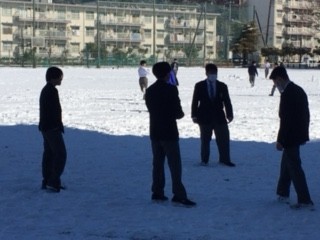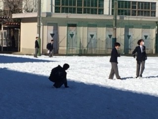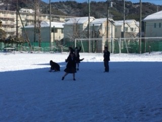 小田原では雪が積もることがほとんどないため、今日のように少しでも雪が積もる日は、生徒たちにとって特別な一日です。