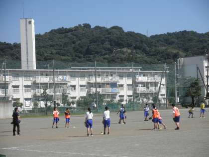 グラウンドではソフトボール、体育館でバレーボールを行っていました。