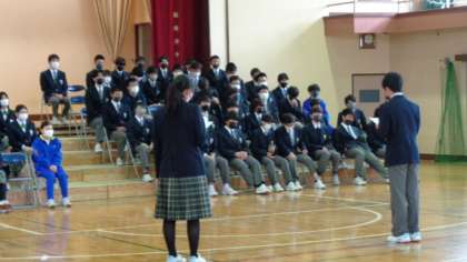 1、2校時に体育館では3年生の学年集会が行われていました。