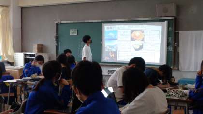 若い先生は、板書代わりにプロジェクターで映像を映していますが、このような板書も素晴らしいです。