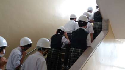 生徒たちは、一言もおしゃべりをせず、速やかに避難をしていま