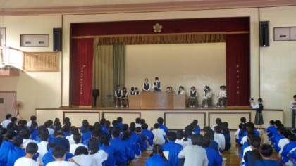 6校時に体育館で生徒会選挙の立会演説会がありました。