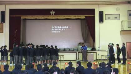 3年生最後の学年集会で『夢の2時間特番渡邉Tプロデュース K’s Cup2時間スペシャル 史上最大の・・・』が開催されました。3年間で何度となく開催された「K’s Cup」。修学旅行の宿泊ホテルでも実施した「K’s Cup」。パワフルな楽しい学年集会です。なんといっても、生徒自身に皆で楽しもうとする気持ちがあり、それが仲間をまた楽しくさせる・・・といったところがこの学年の味のあるところです。最後は生徒対先生。結果は・・・・、もちろん先生たちの勝利です。まだまだ超えられるわけにはいきませぬ。