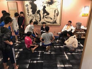 修学旅行2日目、京都班別自主見学を終え、皆、帰館しました。夕食の後は、腕相撲大会やトランプをし、くつろいでいます。