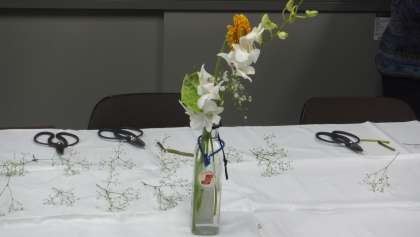 美化委員が水替えをします。長くきれいでいるようにお願いします。