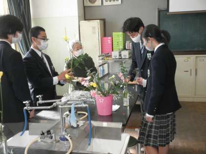 美化委員が水替えをします。長くきれいでいるようにお願いします。