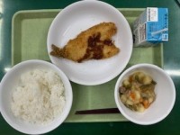 10月23日(木)今日の献立は牛乳、麦入りごはん、いわしフライ、野菜炒め、野菜ふ...