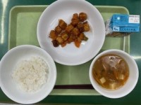 9月24日(火)今日の献立は牛乳、ごはん、高野豆腐の酢豚風、マロニー入りスープで...