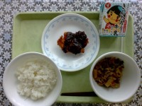 チキン味噌カツ 切干大根の煮物 ごはん 牛乳