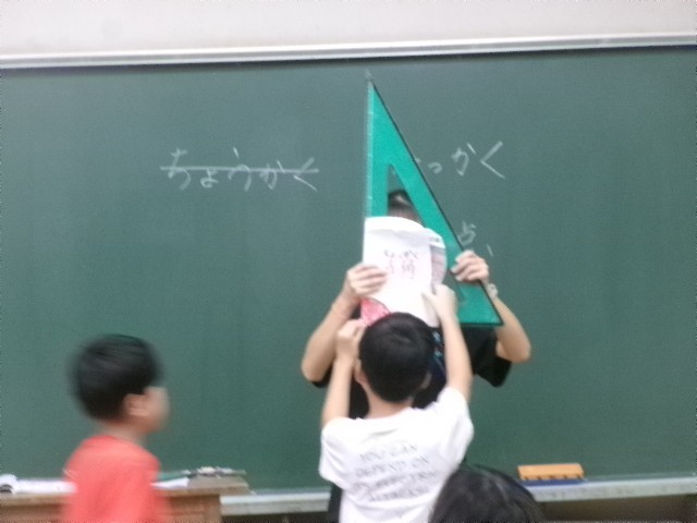 今日は、三角定規にも「直角」と言えるところがあることを確認。