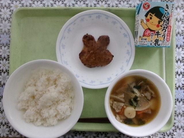 ご飯 うさぎハンバーグ いも団子汁 牛乳