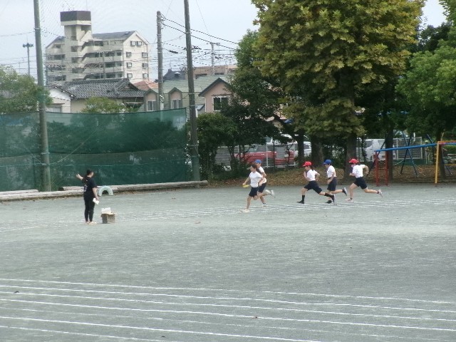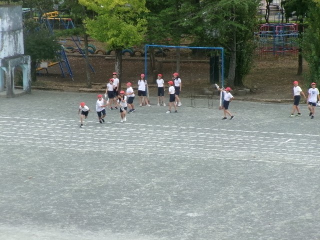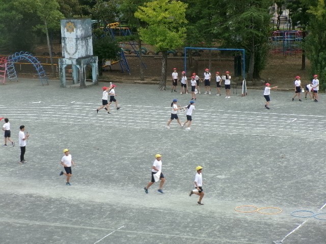 「青の4年生」などと書かれたカードを持った子を見つけて、ゴールに向かっていきました。