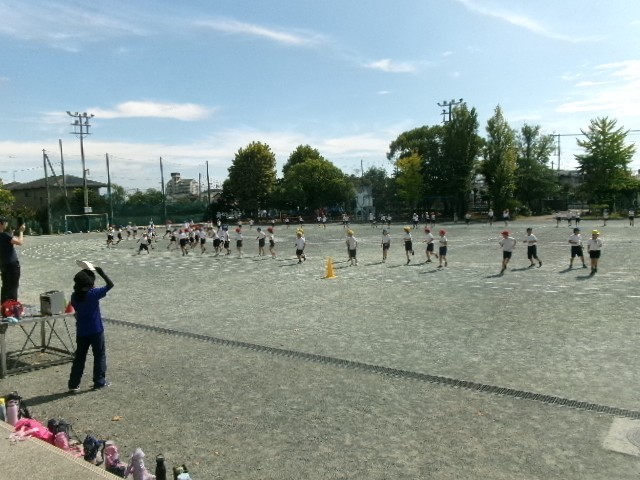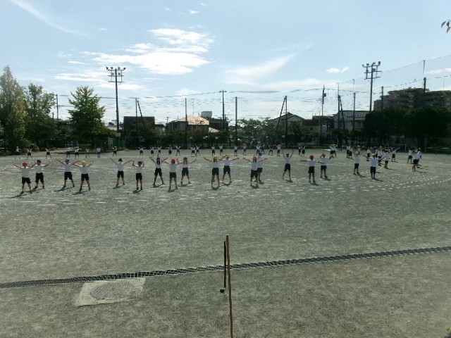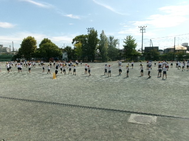 【3年・4年】今日の表現の練習は、運動場で隊形移動