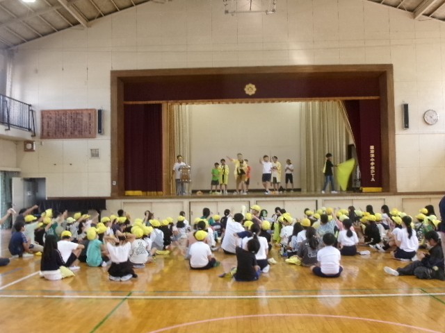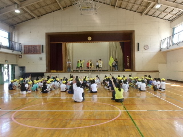 たてわり班の黄組(黄1~10班)が体育館に集まりました。
