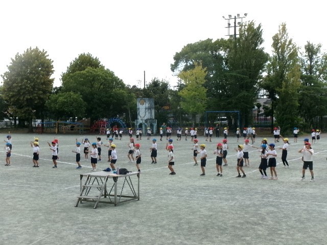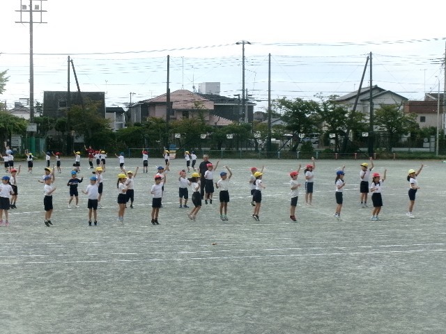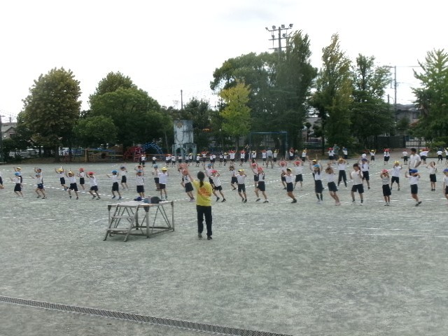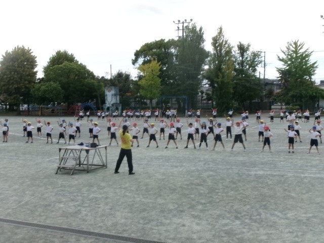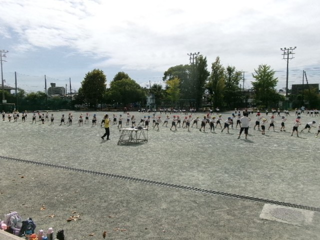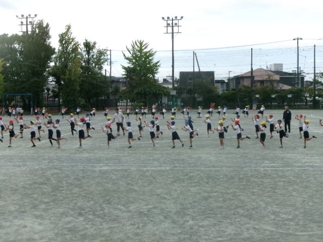 2校時目は、低学年(1・2年生)が運動場で練習。