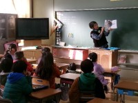 3校時目は、高学年(5・6年生)が運動場で表現の練習。