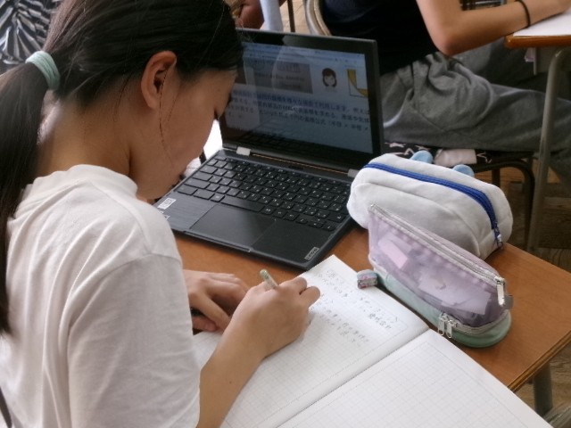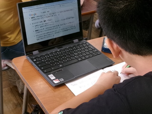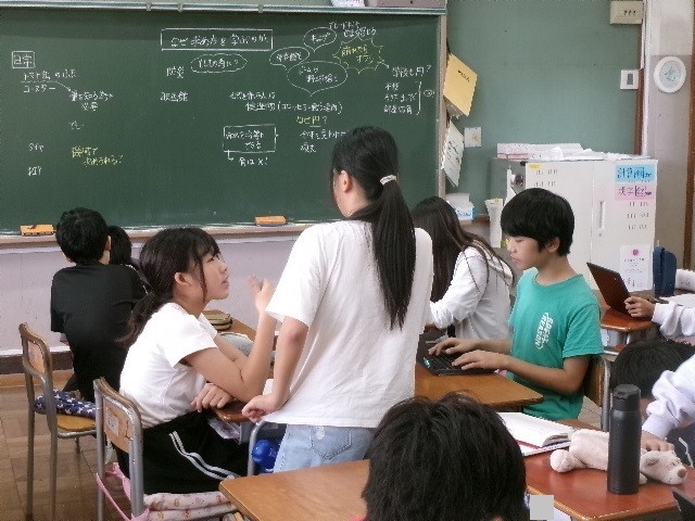 その後、自分が考えたいことを再度調べ直したり、まとめてみたりしながら、何人かの友達と意見交流を自由にしました。