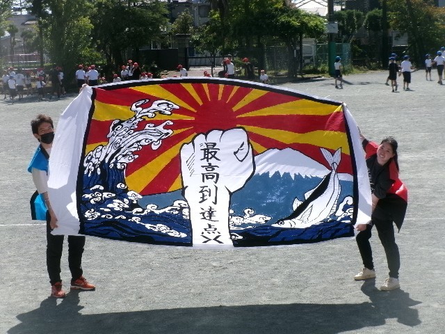 そして、これまで担任がひそかに製作していた大漁旗を披露。