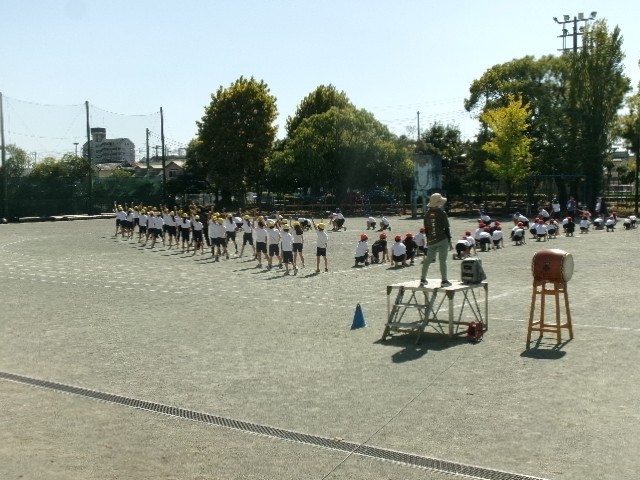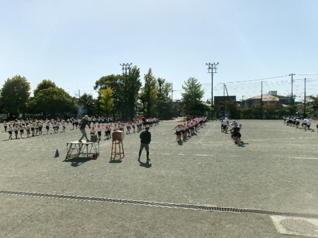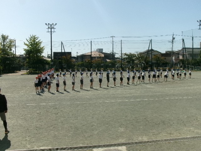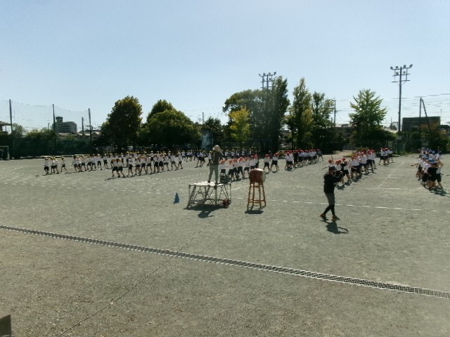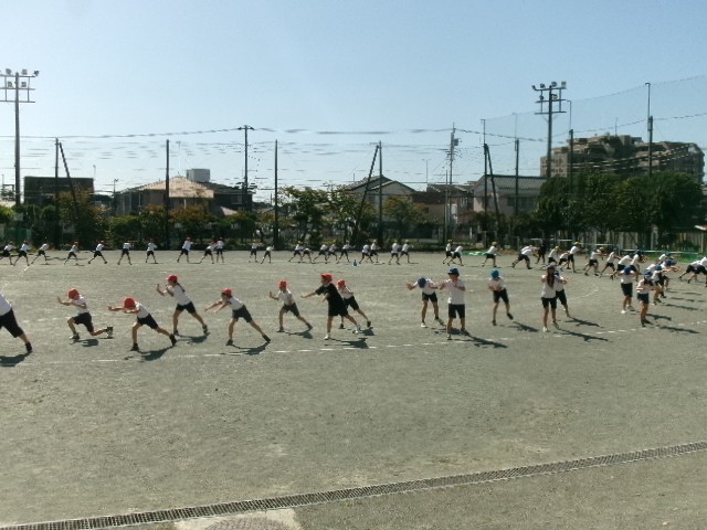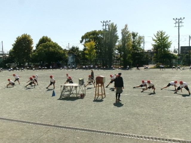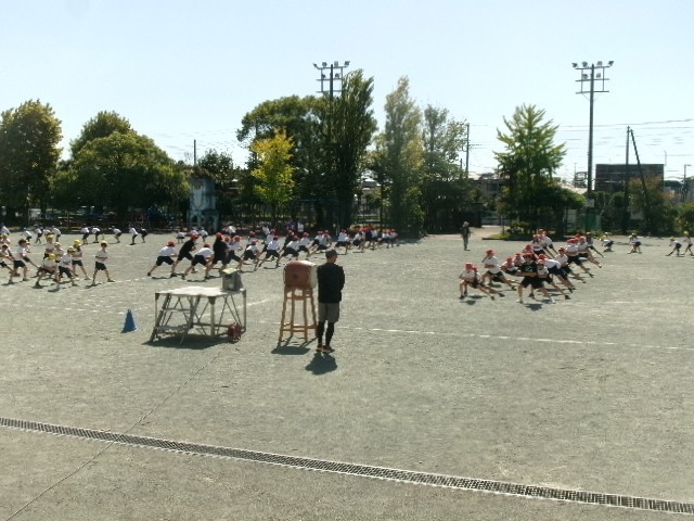 運動会前日3校時目は、5・6年生が最後の練習。