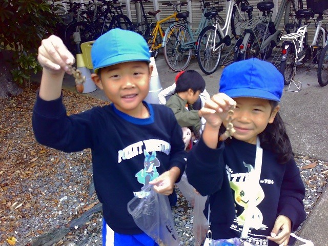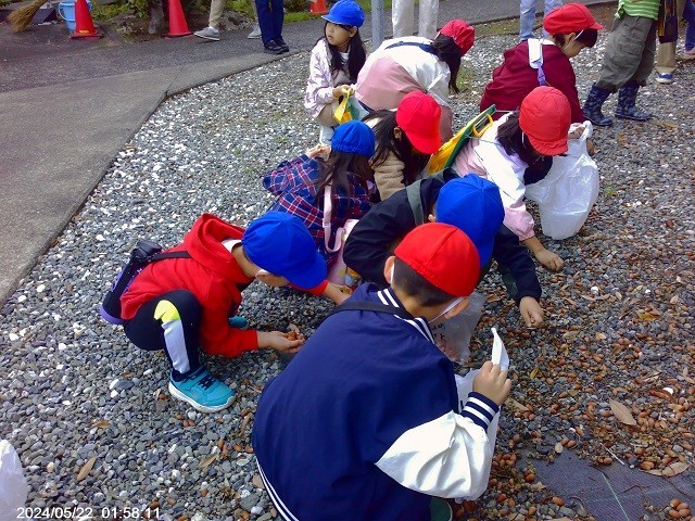 生活科の学習で、秋の実の代表「どんぐり」を集めています。