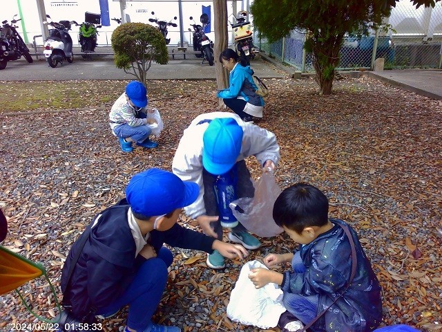 24日(金)1・2校時目、今年も、近隣のライオン工場さんにご協力をいただき、どんぐり拾いをさせていただきました。