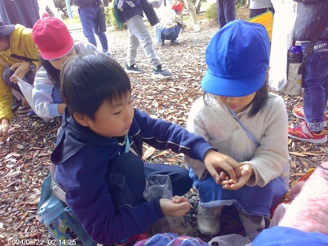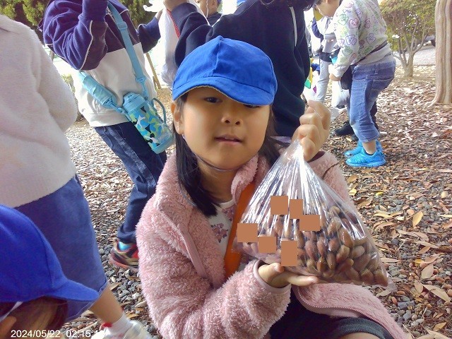 説明を聞いた後に、どんぐりを袋いっぱいに拾いました。