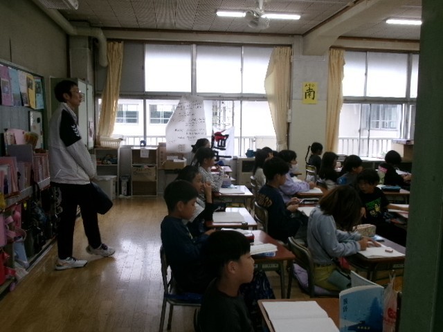 子供たちは、中学校の先生がいらっしゃると聞いて、そわそわしている子もいました。