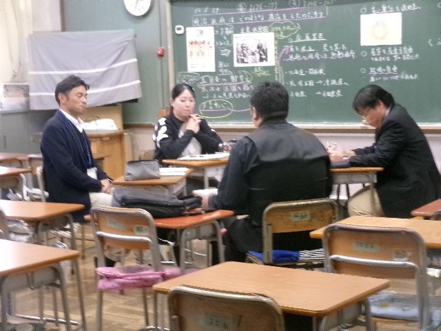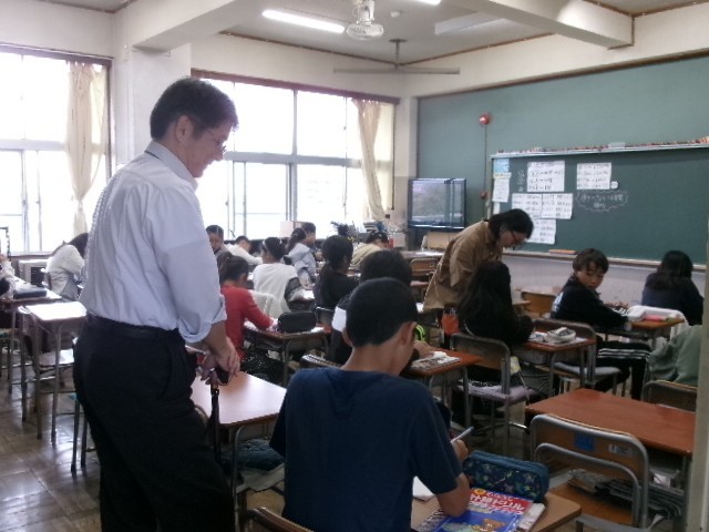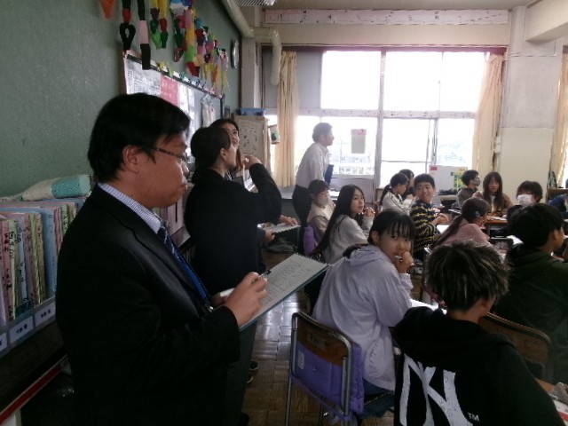 中学校の先生方は、いろいろなクラスの授業を見て回ります。