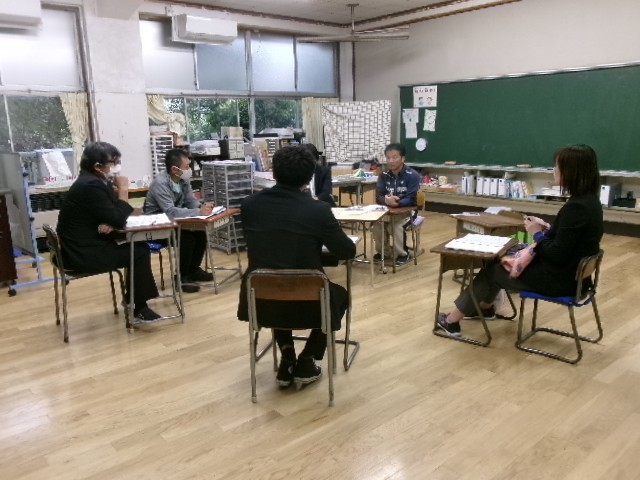 放課後は、1年生~6年生、そして、LRの7か所に分かれ、中学校の先生方と小学校の教員で情報交換会をします。