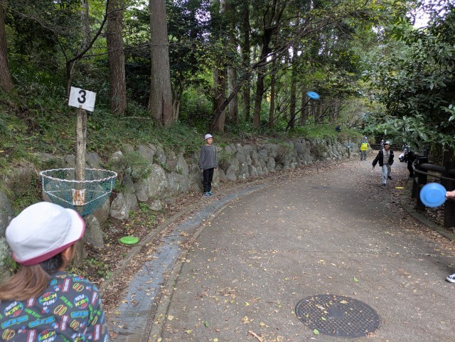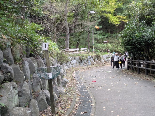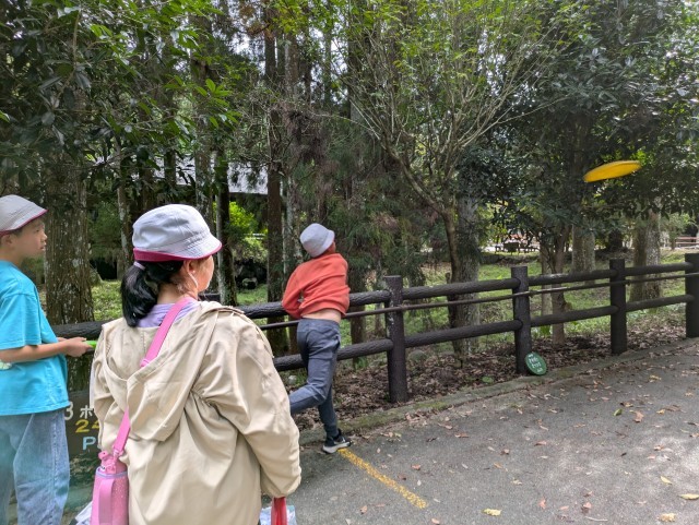 美味しいお弁当を食べた後は、ディスクゴルフに挑戦です。