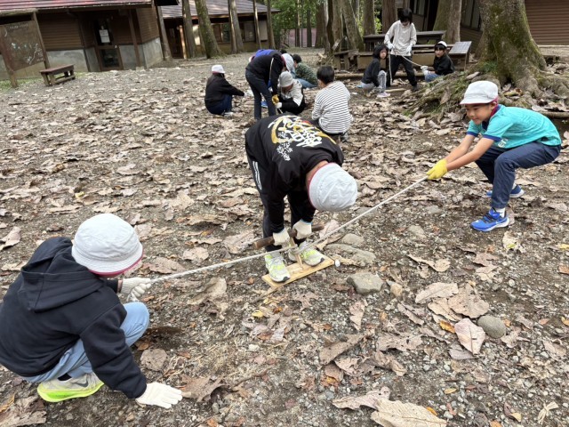 野外炊事の準備が始まりました。