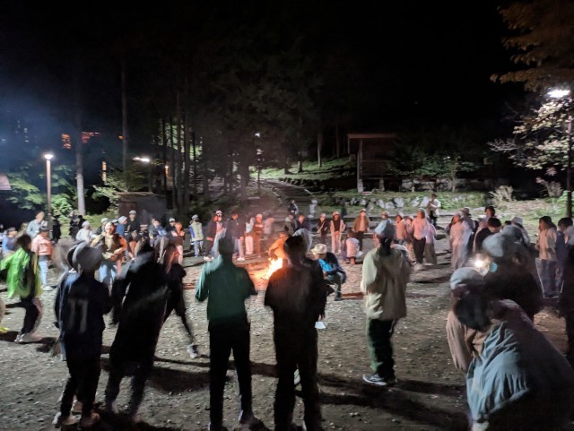 今まで準備をしてきたレク係の児童と、それに応えようとする周りの児童の協力が響き合って、キャンプファイヤーは最高潮に達してきました。
