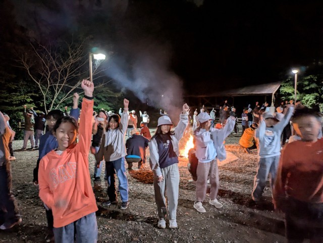 運動会で踊った「最高到達点」が流れると、キャンプファイヤーを囲んで、一斉にダンスが始まりました。
