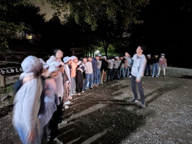 キャンプファイヤーの締めくくりに、みんなで肩を組んで「キセキ」の大合唱。